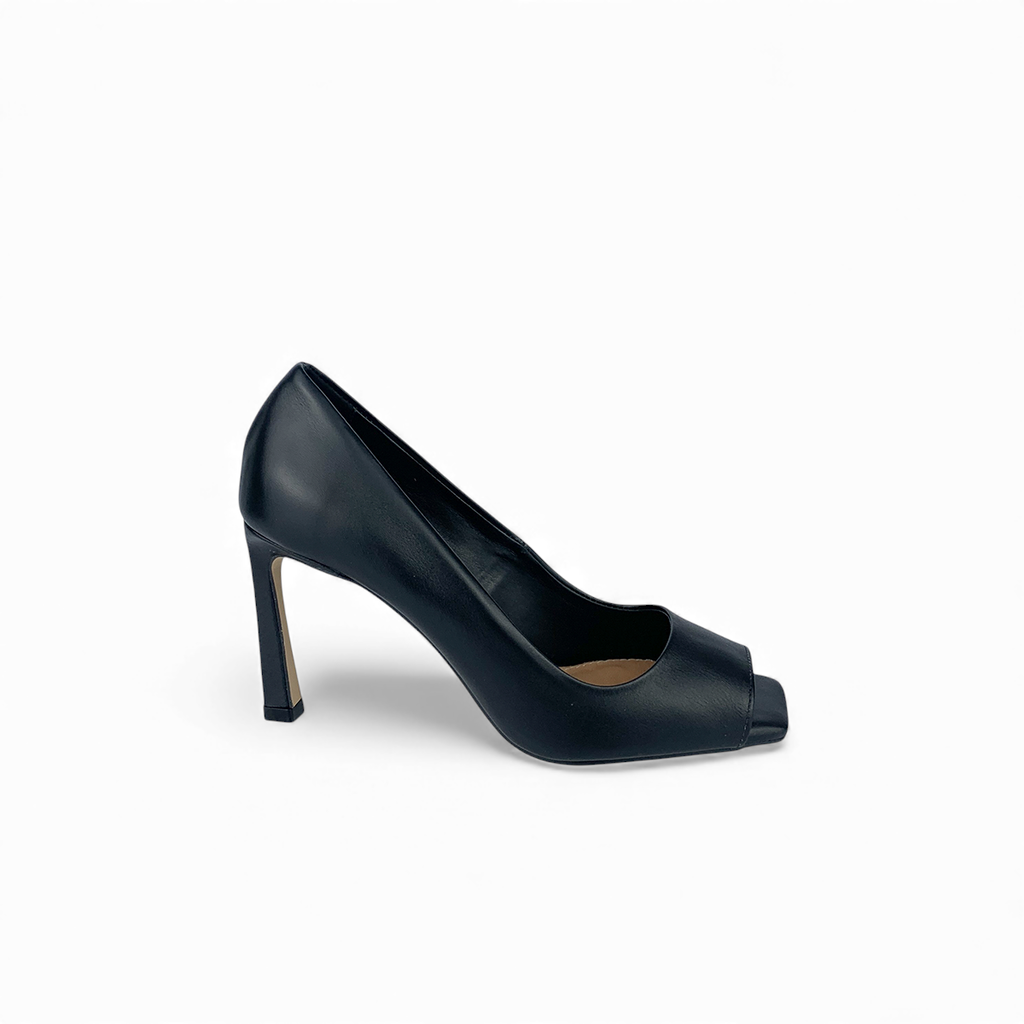 O peep toe em couro vegetal preto é elegante e versátil. O salto alto valoriza a silhueta, enquanto o design atemporal garante sofisticação para diferentes ocasiões..