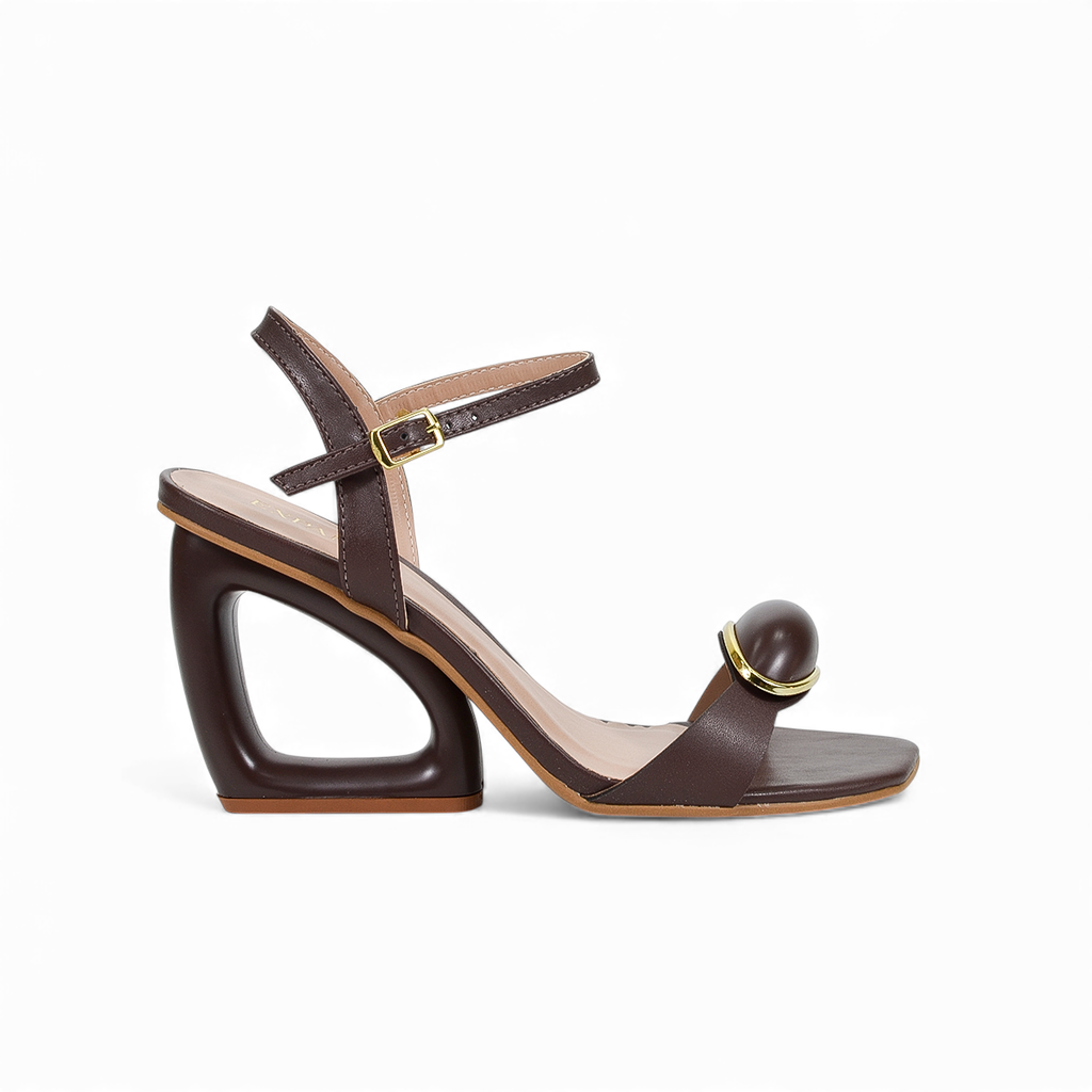 Porque a sandália com salto geométrico traz o design moderno que transforma qualquer produção. O tom marrom sofisticado, combinado à esfera metalizada no peito do pé, cria um visual contemporâneo e elegante. Com linhas minimalistas e acabamento impecável, é o modelo ideal para quem busca estilo, personalidade e conforto em uma única peça.