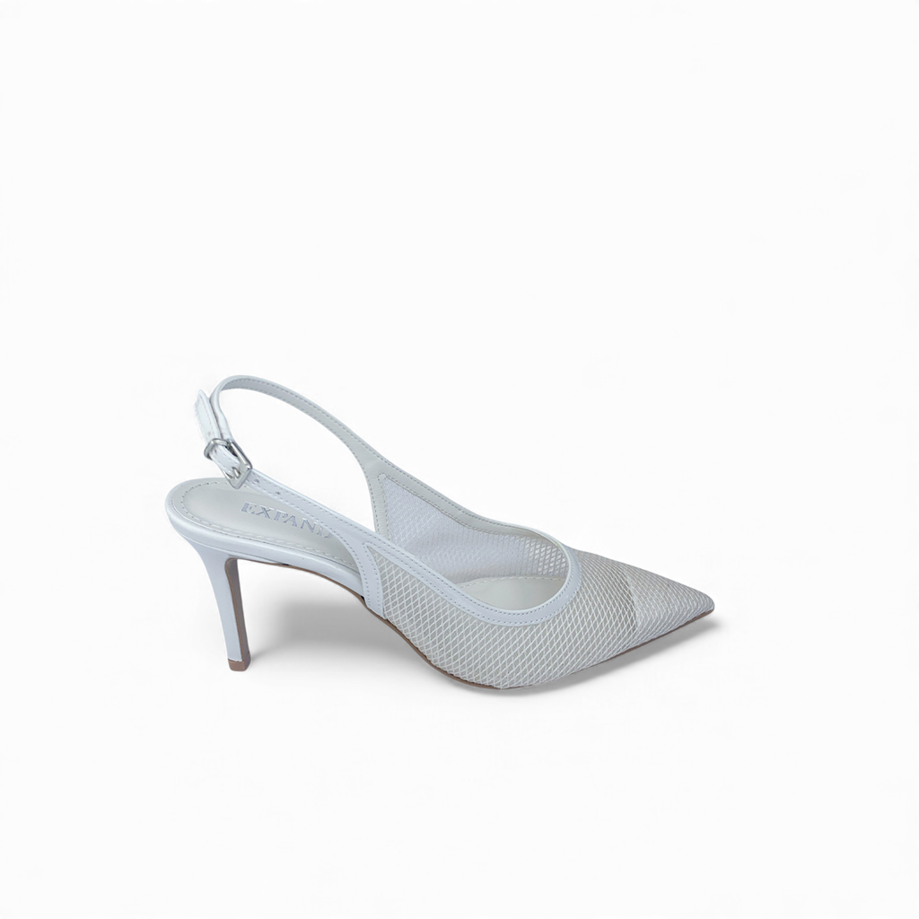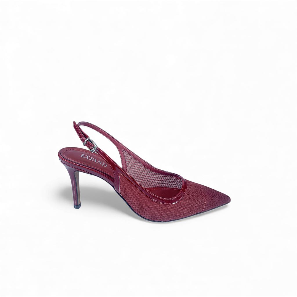 O slingback em verniz marsala é elegante e sofisticado. O detalhe em tela traz leveza ao visual, enquanto o salto fino alonga a silhueta e garante feminilidade.a.