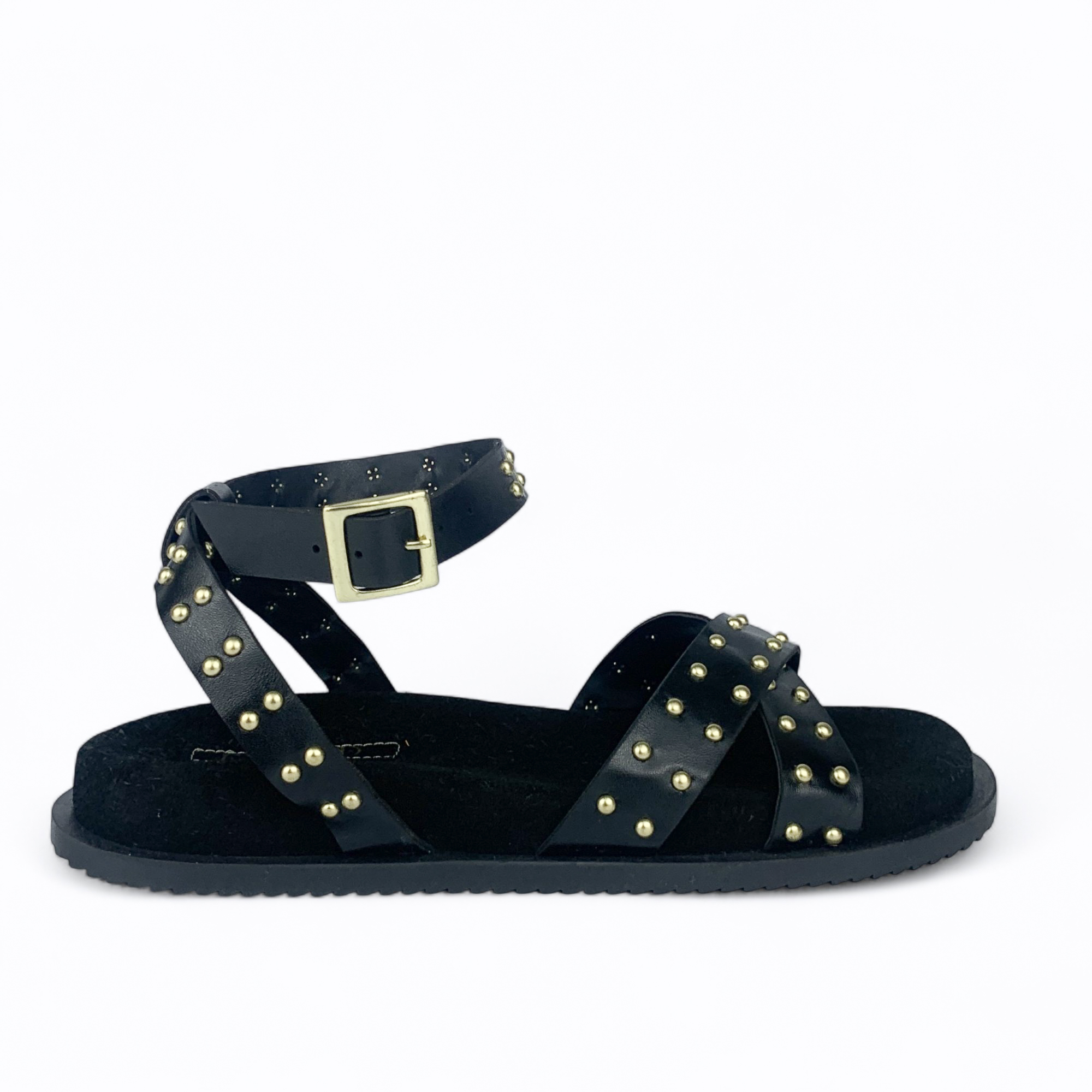 A papete em couro preto une conforto e modernidade. Os cravos aplicados adicionam atitude ao design, enquanto o acabamento sofisticado garante estilo nas produções do dia a dia.a.