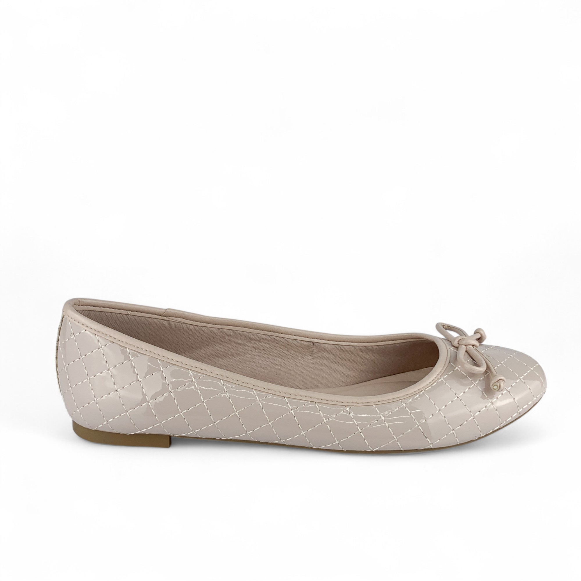 A sapatilha metalizada rose com matelassê e laço é a escolha perfeita para unir feminilidade e elegância em produções atemporais..